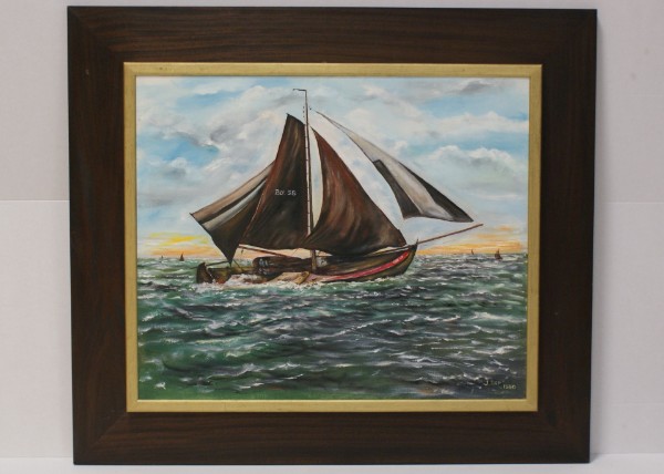 Botter op zee - Kunstschilder: Jan Dop olieverf op linnen 60x50 cm € 1250,00