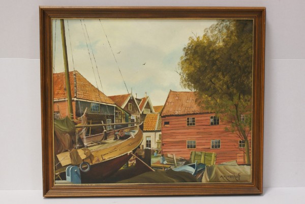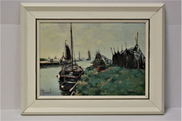 Botter op helling - Kunstschilder Toon Korenhof olieverf op linnen 60x50 cm € 225,00