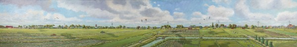 Het originele schilderij bestaat uit zes panelen van 40 cm hoog en 2,5 meter lang.